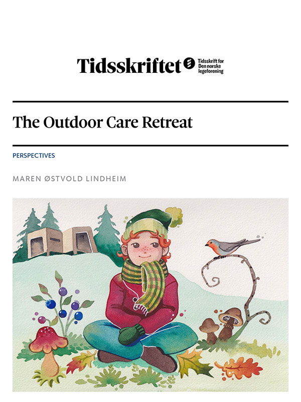 The Outdoor Care Retreat ('Friluftssykehuset') at Oslo University Hospital is a cabin in the woods bordering the hospital grounds. The idea for a retreat cabin was developed by the Department of Child and Adolescent Mental Health in Hospital (S-BUP) in cooperation with the Friluftssykehuset Foundation and the architectural firm Snøhetta. The collaboration arose from a common desire to create an inviting place in nature for patients and their families, and in 2018 the Outdoor Care Retreat was completed. Interdisciplinary follow-up of paediatric hospital patients with serious somatic diseases is important both for an integrated course of treatment and for a quick recovery. Children with serious and/or chronic diseases have a higher risk of developing mental, psychosocial and family-related problems compared to somatically healthy children (1). Moreover, this group is at greater risk of developing symptoms of post-traumatic stress (2). On the other hand, psychosocial factors can affect somatic conditions, for example modulating the impact of stress and inflammatory responses in cases of cancer (3).