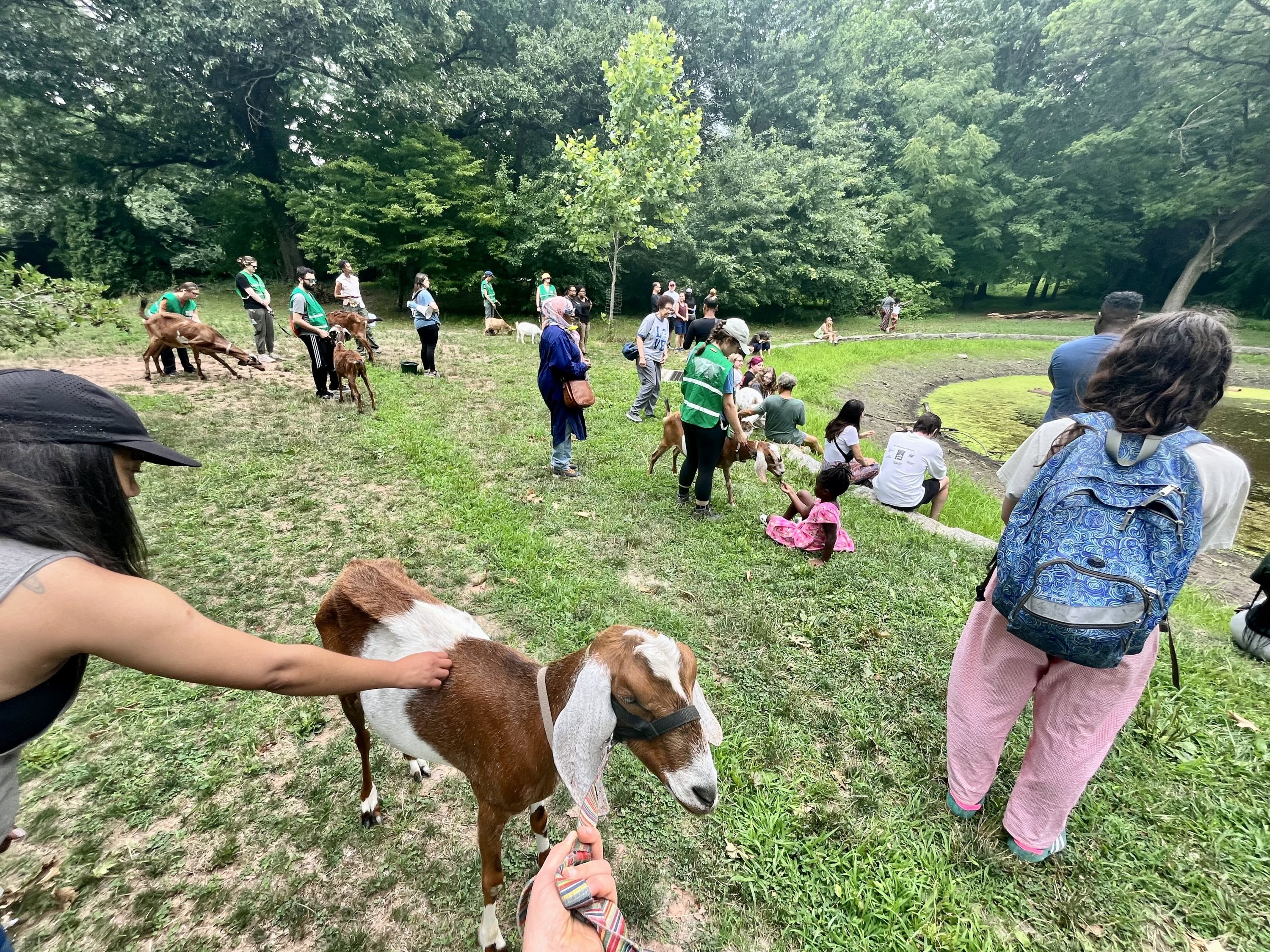 The majority of programming at Philly Goat Project is free, which allows for PGP to remain accessible and best meet the needs of the community. Funding itself comes from donations, grants, and fundraising. Events such as GOAToberfest, TreeCycle, private goat walks, and Happy Hours help provide funding along with the sales of merchandise. Private walks allow for tailored programming, including having the goats attend weddings at Awbury Arboretum and small family gatherings. Financial assistance is also available for private walks.